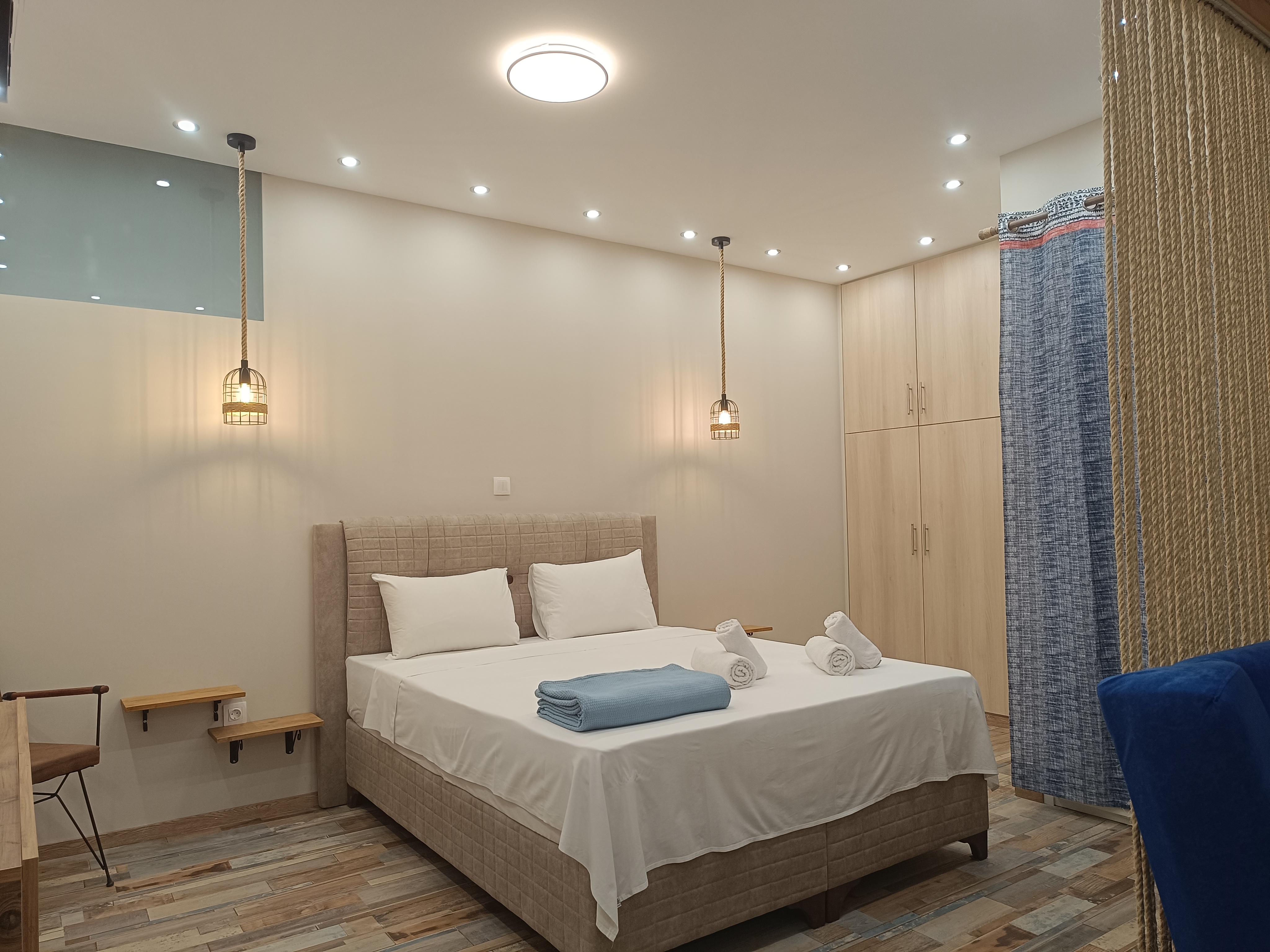 Διαθέτει μια ευρύχωρη κρεβατοκάμαρα με υπέρδιπλο κρεβάτι, TV και A/C.